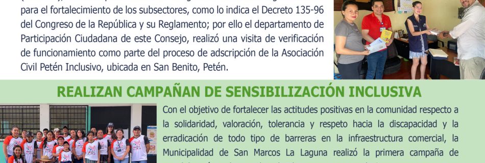 El CONADI, a través del departamento de Incidencia Política, desarrolló el Foro de Discapacidad en la inclusión de Adecuaciones Curriculares y Ajustes Razonables en la Educación Superior. Este fue dirigido a representantes de las Universidades: Universidad de San Carlos de Guatemala (USAC), Universidad Mariano Gálvez de Guatemala (UMG) y Universidad InterNaciones. Dentro de las ponencias …