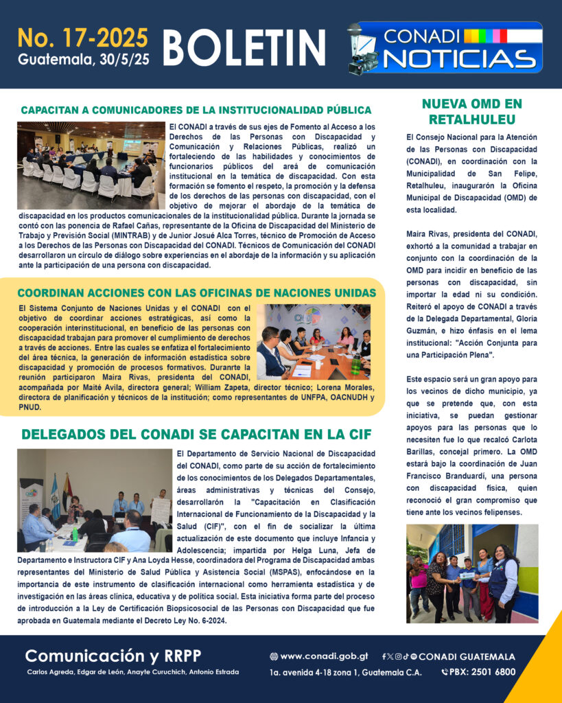 BOLETÍN 17-2025por Comunicación Socialen Boletinesen Publicado el Jun 9, 2025Jun 9, 2025 CONADI NOTICIAS VERSIÓN AUDIBLE